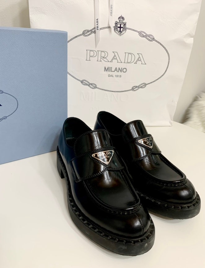 블랙에 프라다 로고까지 완벽하다.내가신어봐도너무예쁜#여자프라달로퍼