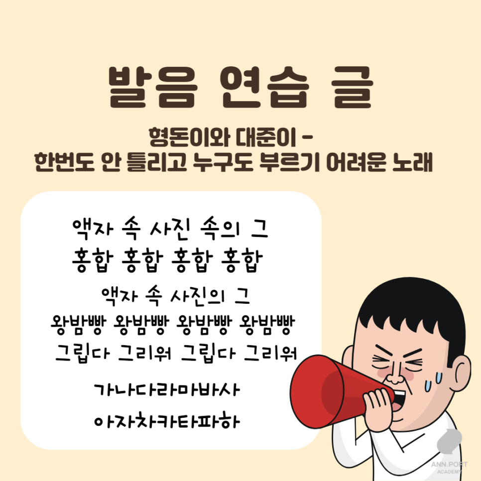 아악! 발음이 꼬여서 목소리가 커지는 경우도 있지만(웃음)??발음이 좋아지는 과정입니다.