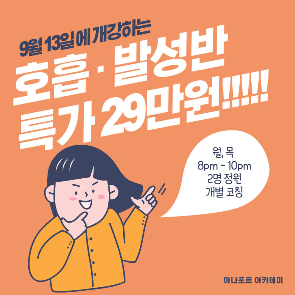 호흡발성반 수강생 모집 1기 특별할인 29만원! 호흡발성 마스터 8일 가능합니다!