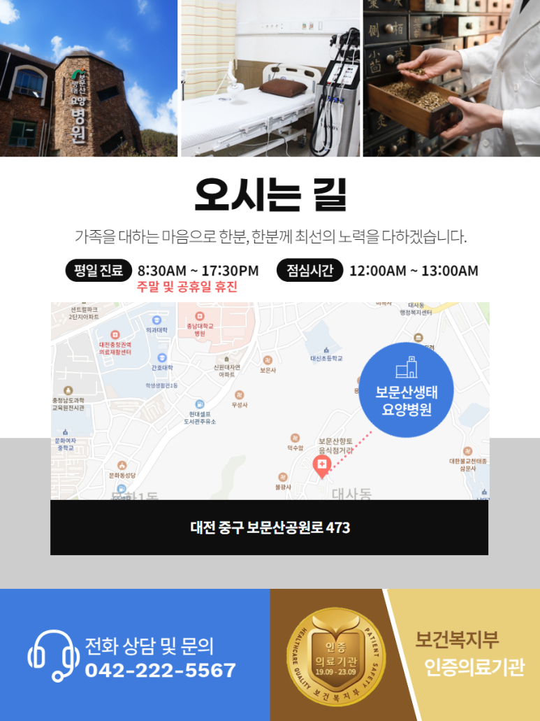 갑상선암을 수술로 제거해도 면역력이 약하고 제대로 관리하지 못할 경우 암의 재발과 전이에 대한 위험성이 높아집니다. 이를 위해 본원은 체내 면역력을 높이고 자생력을 일깨워 암 치료는 물론 재발과 전이를 예방하는 데 도움을 주고 있습니다. 갑상선암 수술 후 재발과 전이에 대한 걱정이나 부작용에 대해 우려하신다면, 보문산생태요양병원에 상담해 주십시오.