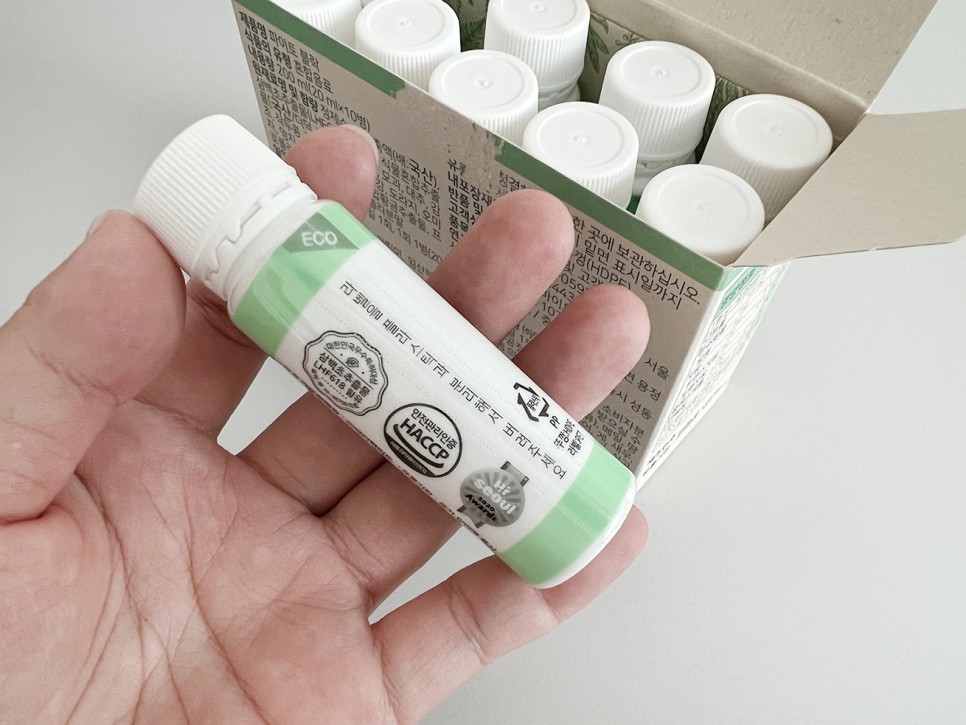 자연에서 얻은 것으로 구성된 다원료가 포함되어 있어 침전물이 발생할 수 있으므로 마시기 전에 병을 흔들어 마시는 것이 좋습니다.성분 자체가 순해서 성인은 물론 어린이도 마시기 좋은 제품입니다.