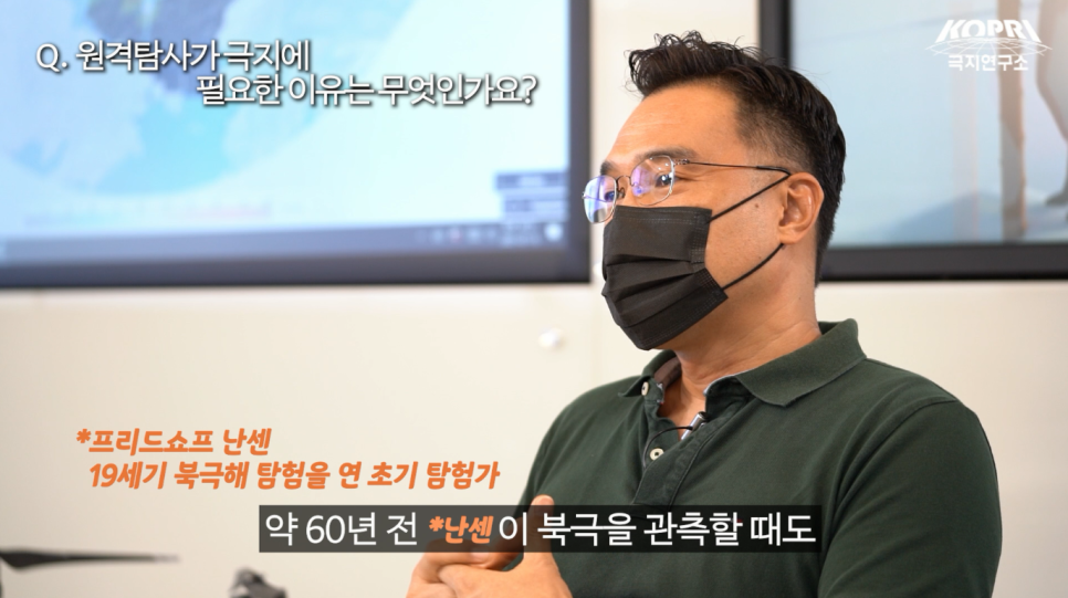 극지라는 넓고 위험한 지역을 인간의 안전을 보장하면서 탐사하기 위한 원격탐사가 필요합니다.