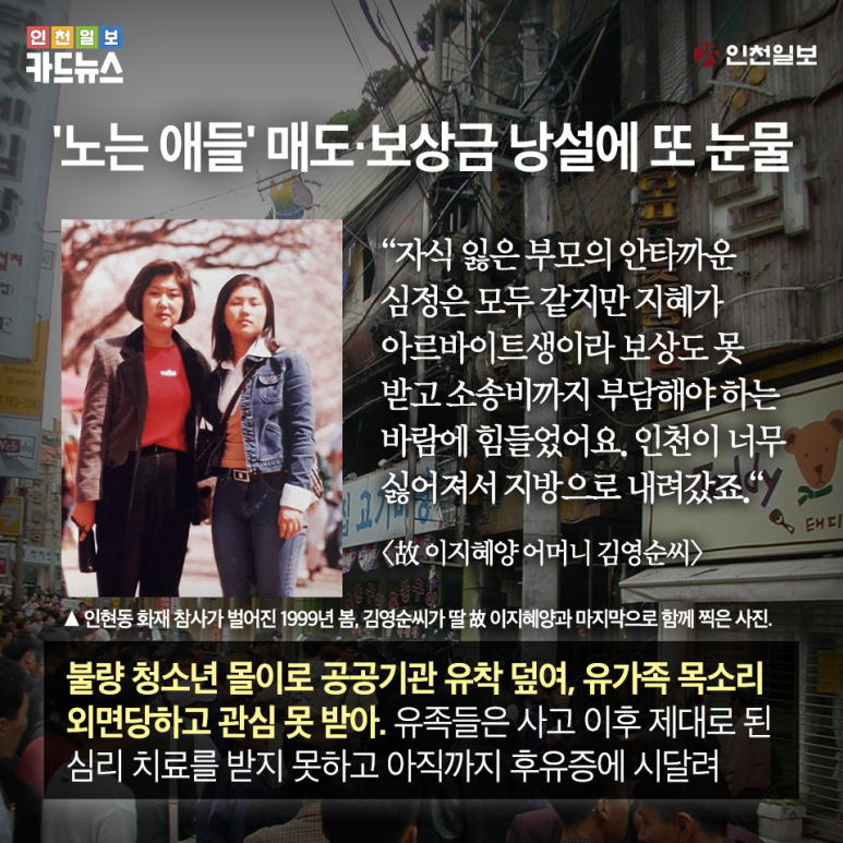 이런 엉뚱한 프레임이 먹혀들던 때가 1999년이었다고 보면 된다.하지만 아이들은 단지 생일파티를 위해 호프집에 갔을 뿐이었고, 분명히 살 수 있었음에도 어른들의 탐욕 때문에 어린 나이에 일찍 세상을 떠나야 했다.