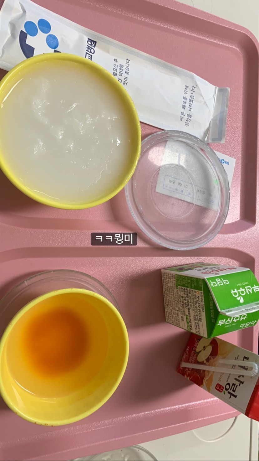 정말 기가 막혔다. 미음탕과 김치국이랑 우유랑 주스 우유만 먹고 다 남김없이 마시러 주스는 집으로 가져갔다.
