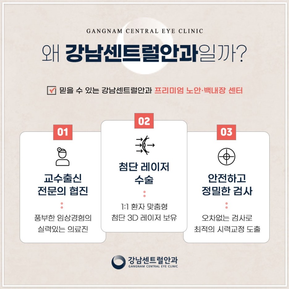 저희 강남 센트럴 안과는 환자마다 다른 눈의 조건, 생활 환경, 특성 등을 파악하여 가장 안전하고 적합한 렌즈를 권장하고 있으며, 백내장 다초점 실비 여부도 함께 확인하여 적절한 방법을 찾아내고 있습니다.