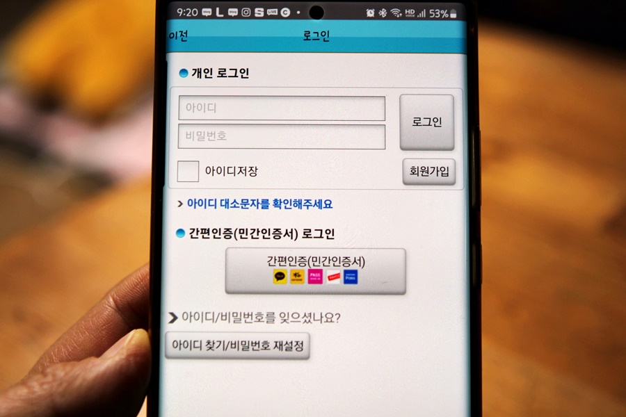 저는 회원 가입도 하지 않은 상태인데 회원 가입을 하지 않아도 간편 인증을 통해 로그인을 할 수 있거든요.다섯가지방법으로간단한인증이되어서저는카톡인증서를이용해로그인했습니다.