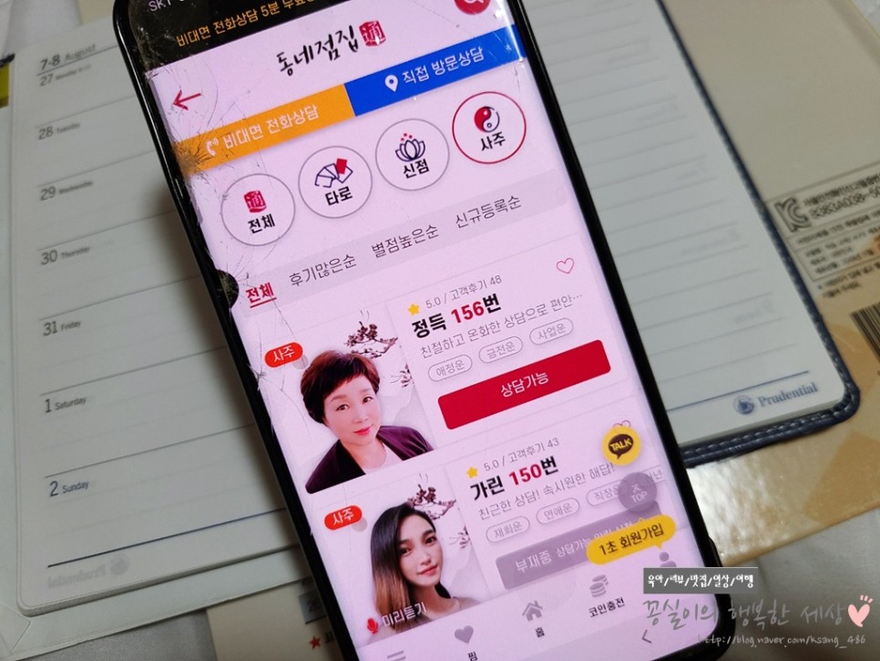 요즘에는 뭐든지 비대면을 좋아하잖아요.저도 아이가 있어서 외출할 때도 꽤 조심해서 볼일만 보곤 하는데, 특히 새해 운세를 보러 가려면 이동하고, 또 30분~1시간 이상 상담하고 답답하기도 하지만 코로나로 인한 걱정이 앞서갔습니다.