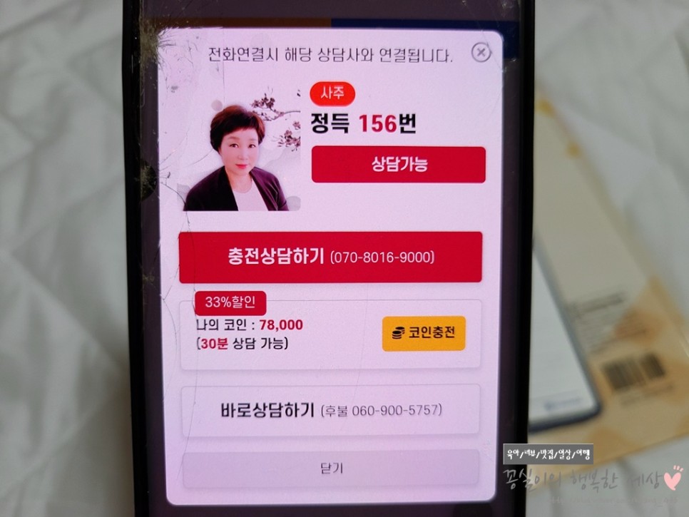 전화 번호가 좋은 곳이라고 듣고, 저는 신년 운세를 보려고 가입했습니다만, 타로와 신점의 전문가 분들도 계시기 때문에, 그곳은 걱정하지 않아도 괜찮을 거라고 생각합니다.