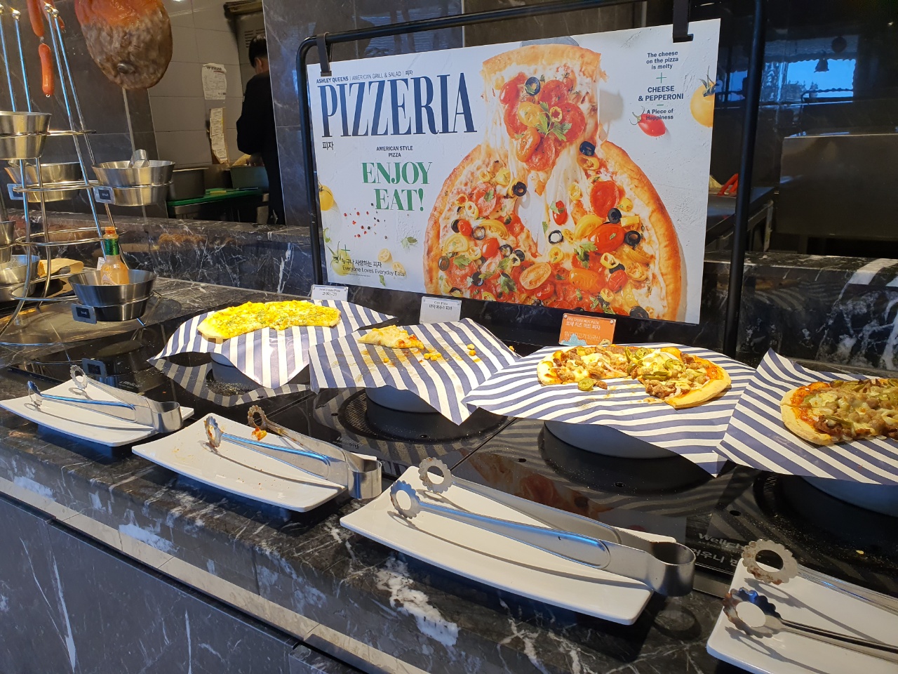 특히 애슐리 퀸즈 제주 서귀포점은 디너에 방문하면 200가지 이상의 요리 메뉴를 볼 수 있어 더욱 만족스러웠습니다. 디너 뷔페에서만 볼 수 있는 시그니처 스테이크와 호텔 셰프가 즉석에서 직접 만들어주는 신선한 초밥을 즐길 수 있습니다. 그리고 피자, 파스타, 한식, 바베큐, 샐러드까지 함께 만날 수 있었던 아주 스웨그가 넘치는 제주 뷔페였습니다.
