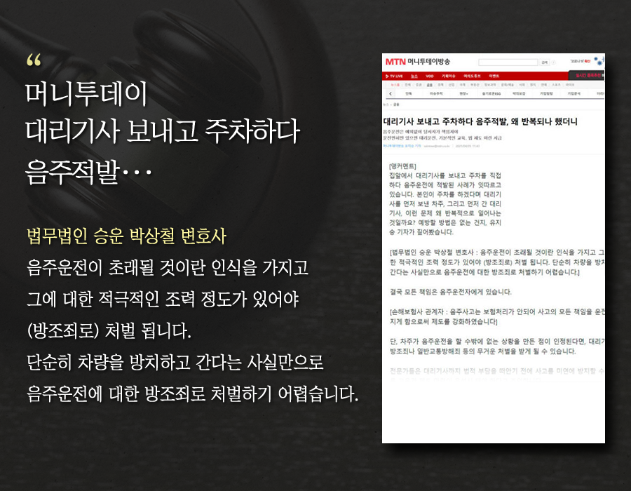 만취한 운전자로 인해 발생한 사고는 타격자의 의사와 상관없이 공소권을 사용해 재판을 할 수 있도록 법률에 규정돼 있기 때문에 사태가 심각할 경우 음주운전 탄원서를 제출해도 선처가 반영되지 않고 징역생활을 할 수 있습니다. 만약 해결을 요청받은 상황에 관여했다면 신속하고 적법한 해결을 추진해야 합니다. 이런 상황에 처했을 때 혼자 해결하려 하기보다는 법률지식을 갖춘 법조인에게 도움을 청하는 것이 더 좋은 대안이 될 수 있습니다. 어떤 기준으로 어떤 징벌을 받을지를 정확히 파악한 뒤 양형 요소를 따져 최대한 원만하게 해결해야 합니다.