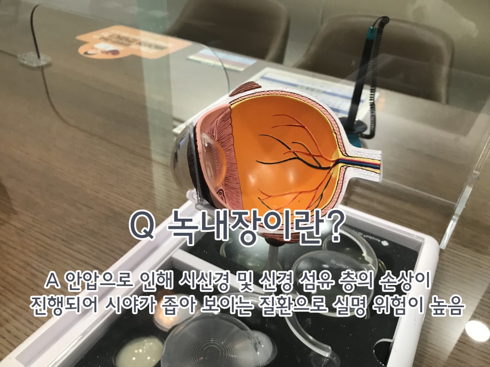 부분의 질환은 소리 없이 찾아오는 경우가 많으며, 그 중 하나가 녹내장입니다. 안구에서 발생하는 질환으로 초반에 별다른 증상이 없어 진행 단계에 이르러 불편함을 느끼고 발견하는 경우가 많습니다. 황반변성, 백내장과 함께 실명질환으로 꼽힐 정도로 매우 심각한 질환임을 알 수 있습니다. 그러나 어떤 이유로 발생하는지에 대해 모르는 경우가 많기 때문에 본인 스스로가 그런 원인에 노출되어도 깨닫지 못하는 상황이 되기도 합니다.