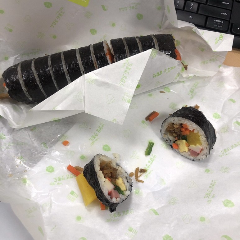 회사 확정자 파티~ ~식당에 가지말고 김밥, 나는 두줄 두줄은 먹어야 배불러.