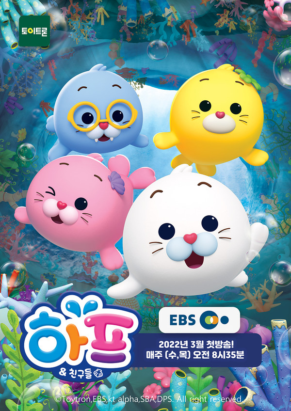 바다표범 하프, 홉, 윙크, 뭉크가 주인공인 <하프와 친구들>은 눈꽃나라에서 펼쳐지는 마법 가득한 일상을 통해 어린이 시청자들에게 몰입감을 선사한다. ‘하프와 친구들’은 ‘완구는 문화’라는 경영철학으로 20여 년간 아이들을 위한 비타민 같은 장난감을 꾸준히 개발해온 토이트론의 캐릭터 ‘아기물범 하프’를 3D 애니메이션으로 제작한 작품이다.