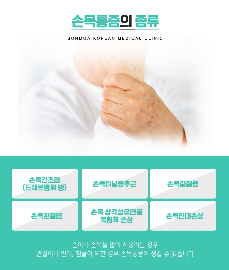 손목 건초염도 자주 발생하는데요. 손목을 둘러싸고 있는 힘줄에 염증이 생기는 질환이지만 서서히 통증이 나타나기 때문에 비교적 초기에 알아차리기에는 어려움이 있었습니다. 만약 건초염이 만성이 되면 손이 움직이지 않게 될 수도 있었습니다. 그래서 조금이라도 이상이 있을 때 신속하게 조치를 하는 것이 좋았습니다. 엄지 손가락을 구부릴 때 당기는 듯한 느낌이 들면 건초염일 가능성이 높기 때문에 중간에 체크해 볼 필요가 있었습니다.