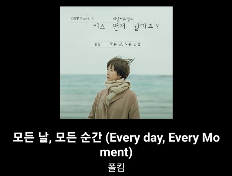 가사) 너 없이 웃을 수 있을까 생각만 해도 눈물 나고 힘든 시간 나를 지켜준 사람이 이제는 내가 너를 지킬 테니 너의 가슴은 언제나 따뜻했던 나의 하루에 유일한 휴식처 나는 너 혼자 충분하다고는 말할 수 없어도 눈으로 알기 때문에 한 송이 꽃이 피고 지는 모든 날을 함께 한다