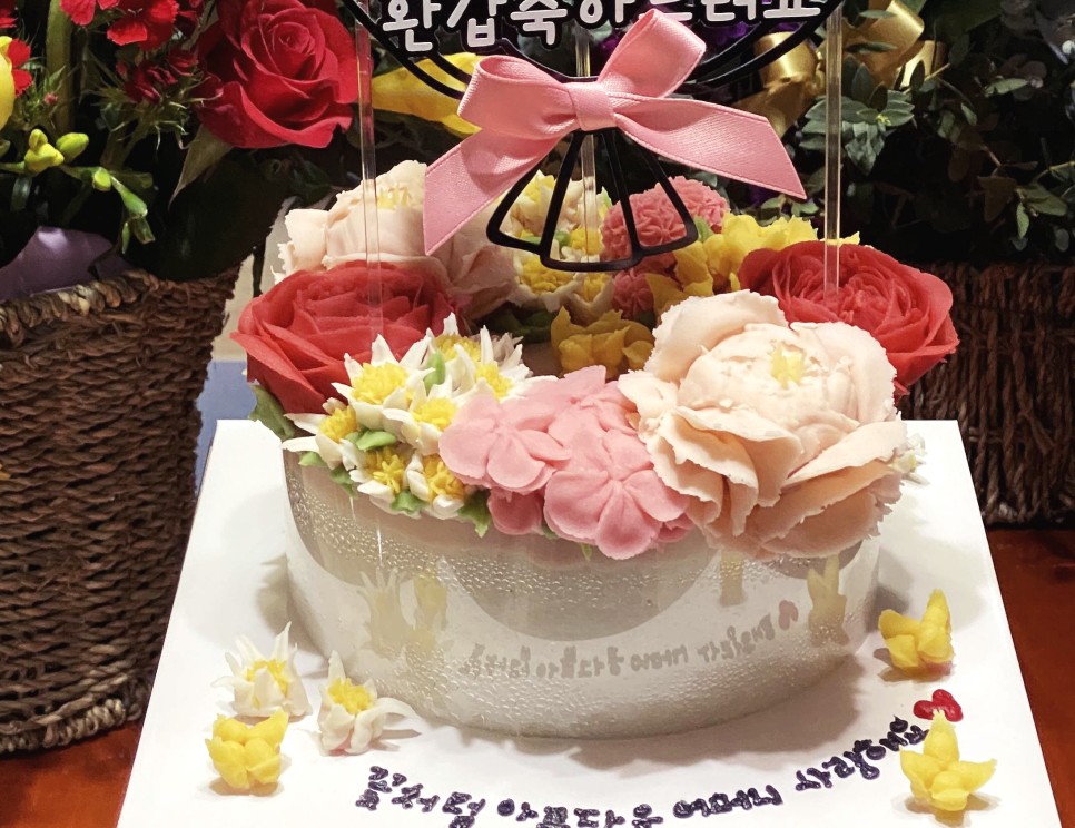 태어나서 처음 만든 앙금플라워 케이크라서 완벽했던 건 아니지만 사랑하는 사람을 생각하며 하나하나 정성스럽게 만드는 게 너무 즐거웠고, 제가 만든 케이크를 좋아해주는 모습을 보니 가슴이 설레었습니다.