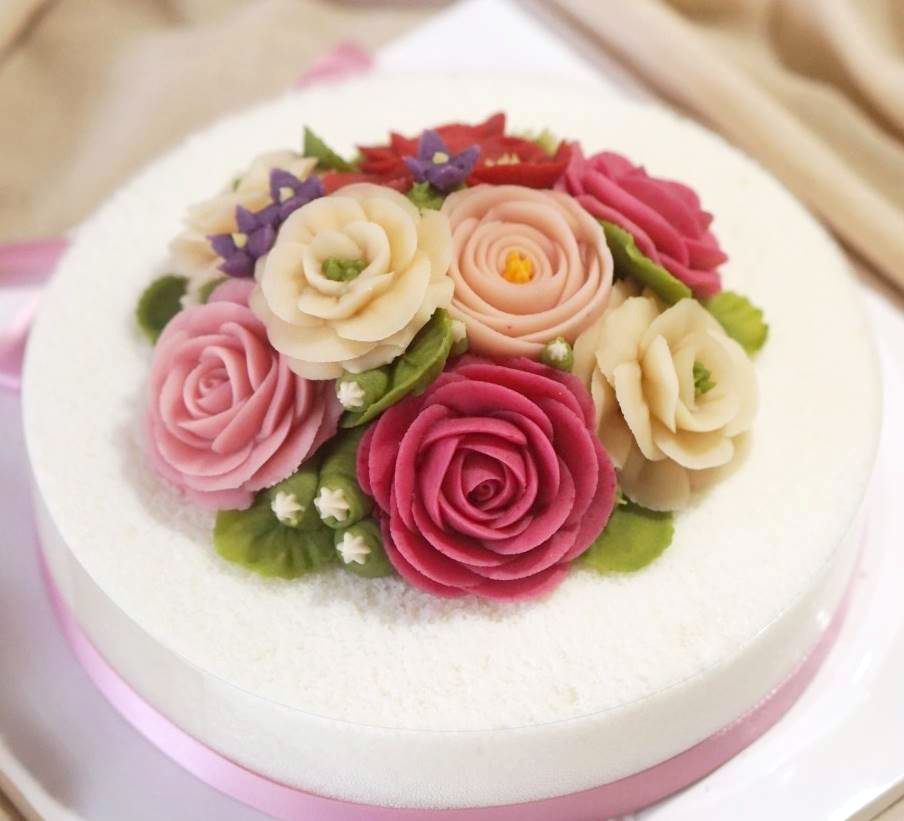 데이지, 장미, 수국, 작은 국화, 대국, 라넌큘러스, 동백, 애플 블로썸, 카네이션, 줄리엣로즈 등 꽃 파이핑 기법만 30여 가지가 넘고,