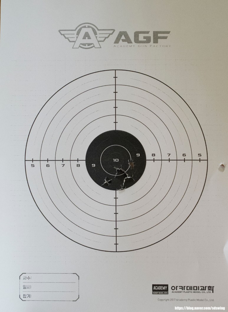 고정식은 홉 업 에어 소프트 건이지만, 10 미터 정도의 거리에서의 집탄성이 우수하네요.