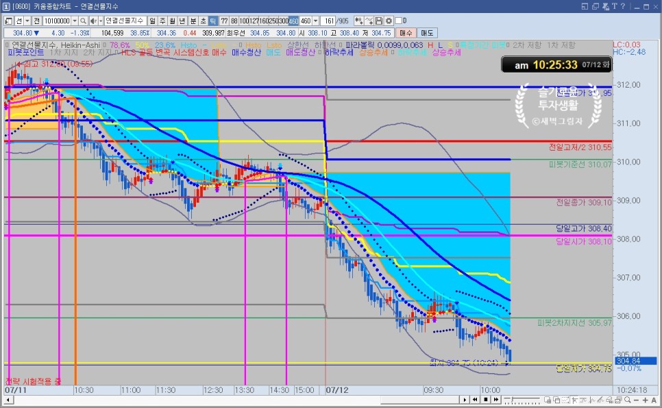 7월 12일(화) 코스피200 선물 틱차트