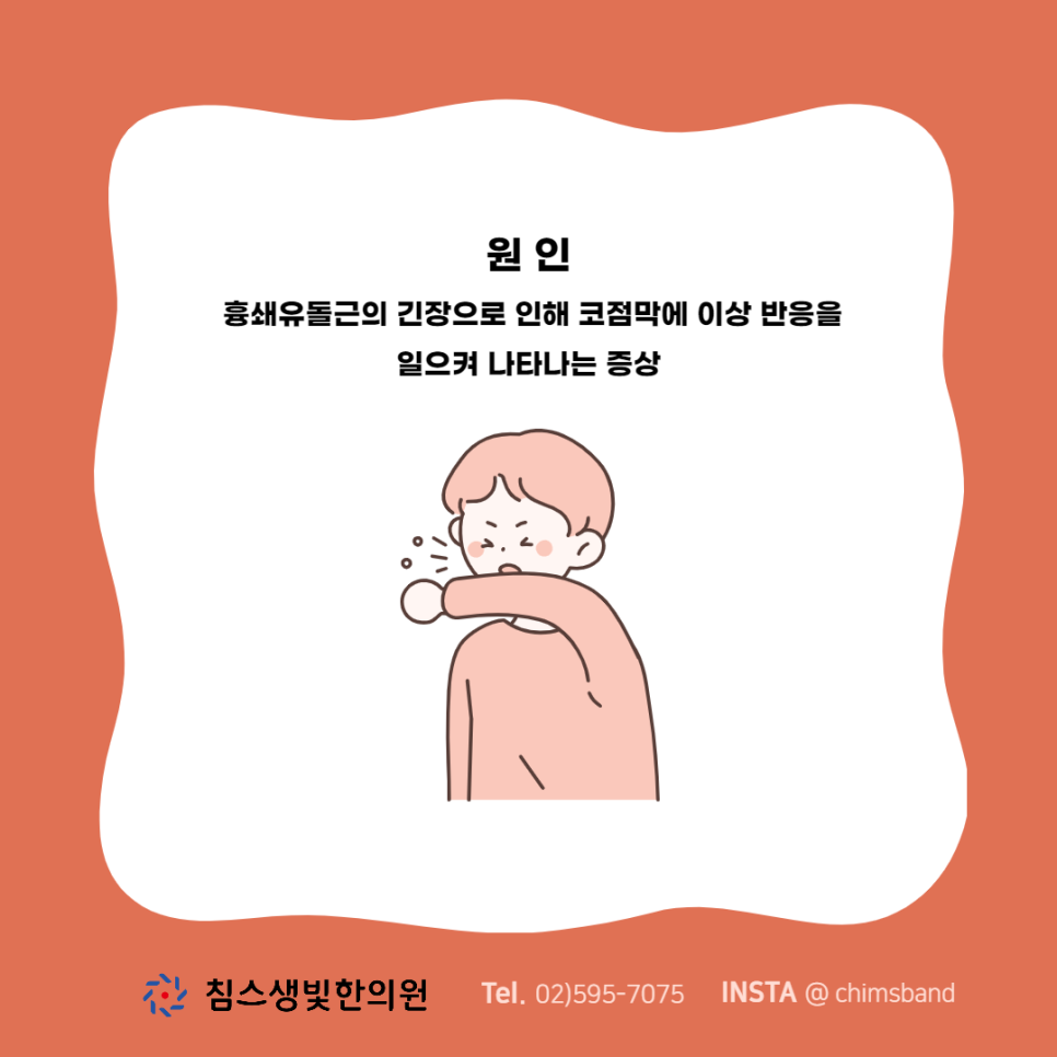 원인목에 위치한 흉쇄유돌근의 긴장으로 인해 코점막에 이상반응을 일으켜 나타나는 증상(근막통증후군)으로 콧속에 염증이 생기는 비염, 축농증 혹은 콧속이 말라 코피가 나는 증상 등이 생기는 것입니다.