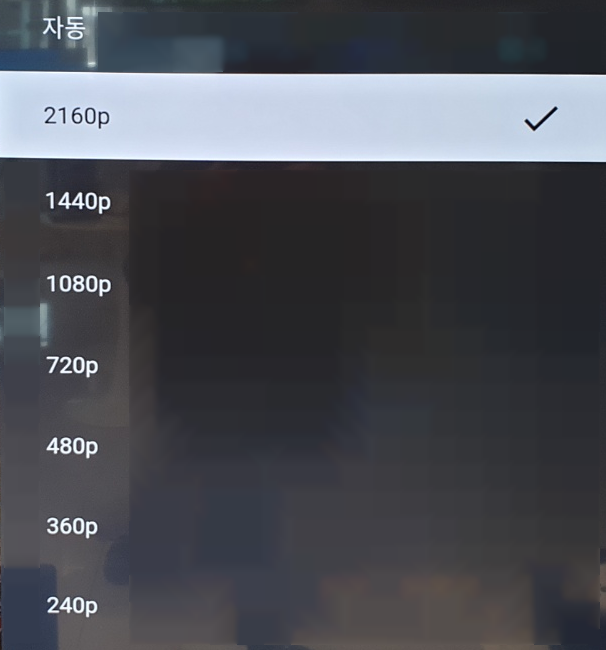 상기 이미지와 같이 서브메뉴가 표시됩니다. 현재 4K로 출력되고 있기 때문에 4K라고 나와…만약 화질을 떨어뜨리고 있다면 해당 화질에 표시됩니다.