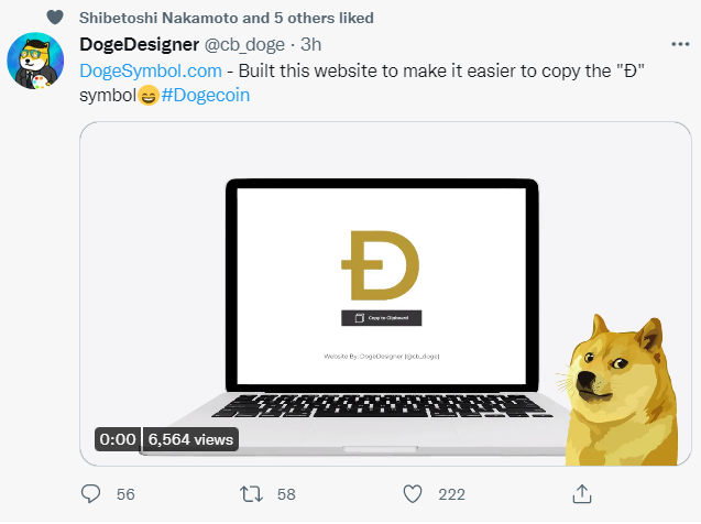 #7. 도지코인 문자(화폐) 심볼인 임시본을 복사해서 사용할 수 있는 웹사이트를 Doeg Designer(도지코인 웹디자이너)가 개설했습니다. 달러 $, 원화와 같은 의미로 사용되고 있습니다.