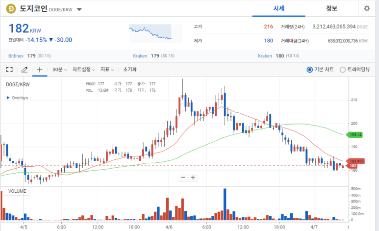 도지코인가(-14.15%)