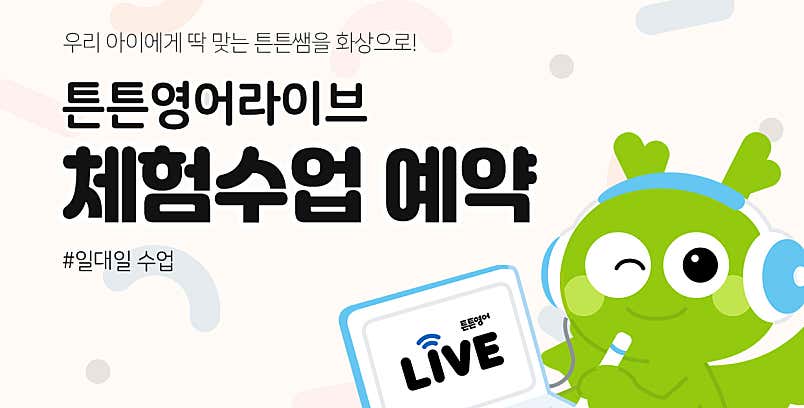 초등학교의 기본 문형을 익히고 짧은 문장을 혼자 읽을 수 있는 단계입니다.영어에 조금씩 익숙해진 아이들을 위한 단계입니다.:)*레벨 3단계기초 문법과 문장의 구조를 익히고 짧은 문장을 만들 수 있는 단계입니다.영어에 자신감을 갖기 시작한 아이들을 위한 단계입니다.:)튼튼영어라이브 대표교재 7종!이렇게 각 교재에 수록된 영상 콘텐츠로 즐거운 영어 시간 보내시길 바랍니다! 모바일 체험팩을 신청하는 http://mpack.tuntunlive.com/Apply 라이브 공식 홈페이지에서 무료체험을 신청하면 무료레벨테스트 튼튼한 영어라서 이브의 연상력 학습법 실력을 담은 특별한 코너, Talk+실력짱, 이중언어 선생님과 1:1 화상수업 정성가득, 아이의 공부방향을 잡아주는 피드백이야~~~ 할 수 있어요! 무료체험신청 https://tuntunlive.com/pricing/trial궁금하신 사항은 #튼한 영어라이브 아래 상담채널로 문의 부탁드립니다.친절함을 듬뿍 담아 알려드릴게요 http://tuntunlive.channel.io튼튼한 영어 라이브 화상 영어도 더 튼튼하게! 튼튼한 영어 라이브에 대한 모든 것을 부담없이 들어보세요!tuntunlive.channel.io튼튼한 영어 라이브 화상 영어도 더 튼튼하게! 튼튼한 영어 라이브에 대한 모든 것을 부담없이 들어보세요!tuntunlive.channel.io튼튼한 영어 라이브 화상 영어도 더 튼튼하게! 튼튼한 영어 라이브에 대한 모든 것을 부담없이 들어보세요!tuntunlive.channel.io