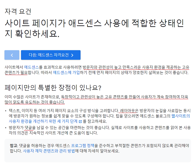 애드고시 통과법 구글에서 제시하는 자격기준을 보면 긴 글이지만 핵심은 형광펜을 계속!