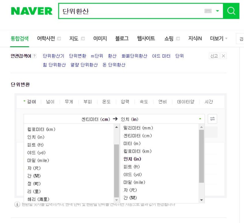 그 외에도 변환되는 단위를 바꾸면서 클릭하면 8 Centimeter가 밀리미터나 인치에서는 어떤 수치로 변하는지 히스토리처럼 확인할 수 있으니 참고해서 활용하는 것이 좋습니다.