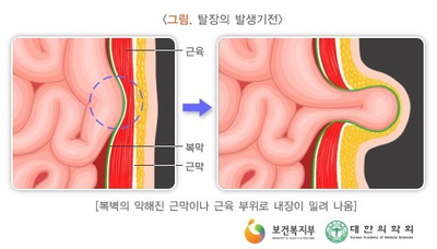 이는 복벽에 국소적으로 약화된 틈새를 통해
