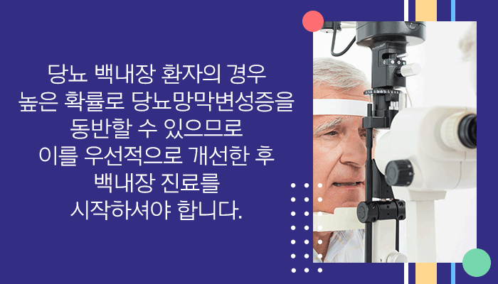 하지만 당뇨병 환자는 혈당 조절이 중요하므로 당뇨망막증을 우선 개선한 후 백내장 진료가 이뤄져야 합병증 확률도 낮추고 시력 개선도 가능합니다.