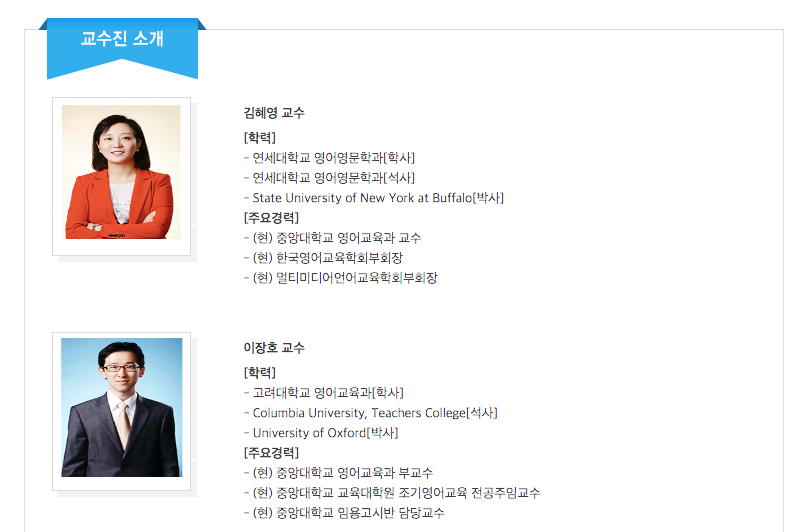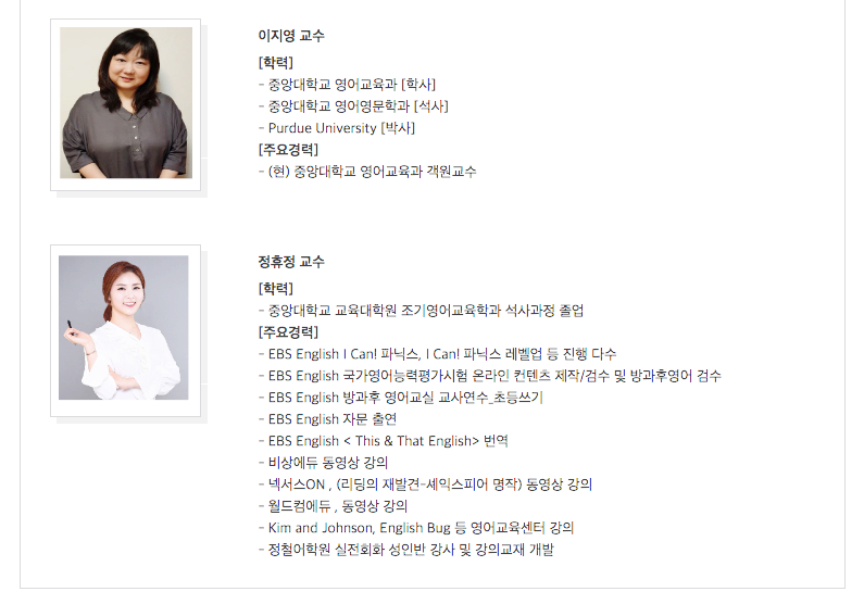 온라인 수업이라 지루하지 않을까 교수님들은 어떤 분일지 궁금했는데 다들 현재 중앙대학교 영어교육과 교수들로 커리큘럼이나 수업 내용 자체의 수준이 기대 이상으로 좋았고 지루하지 않고 너무 재미있었다.