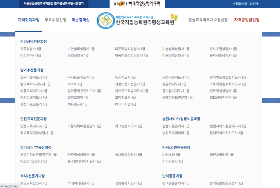 한국직업능력연구원에 정식으로 등록된 자격증이 이렇게 많은 한국직업능력평생교육원.