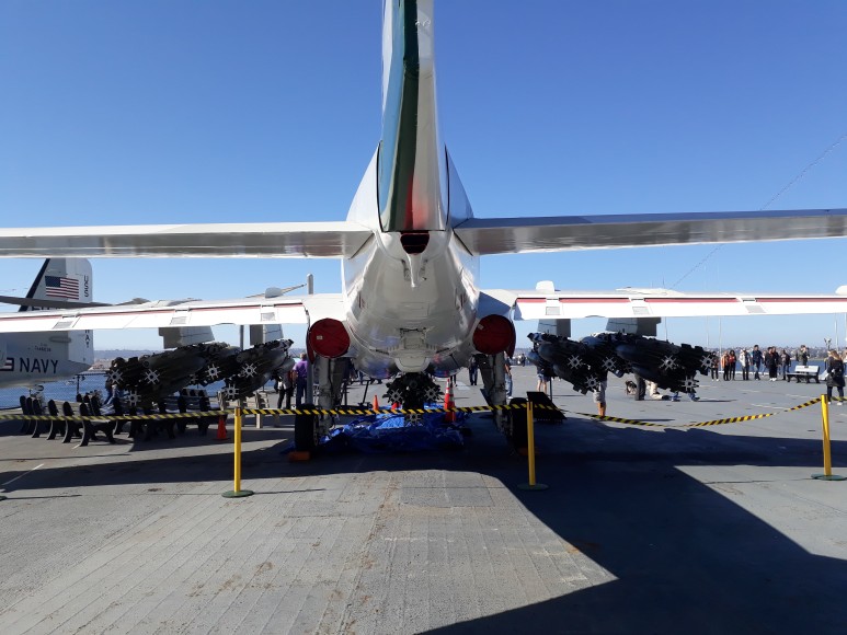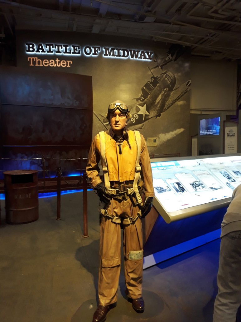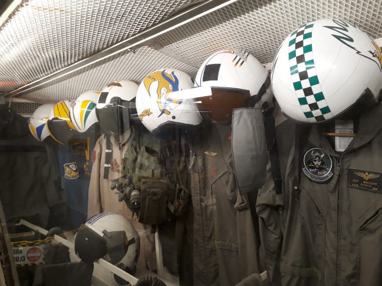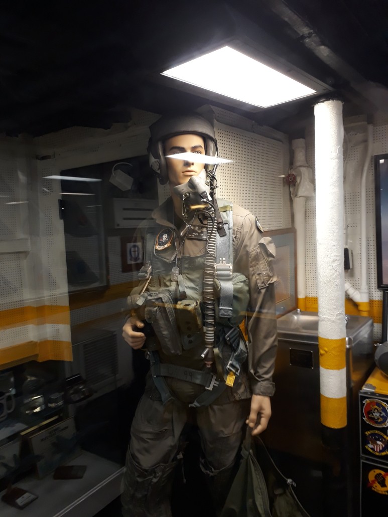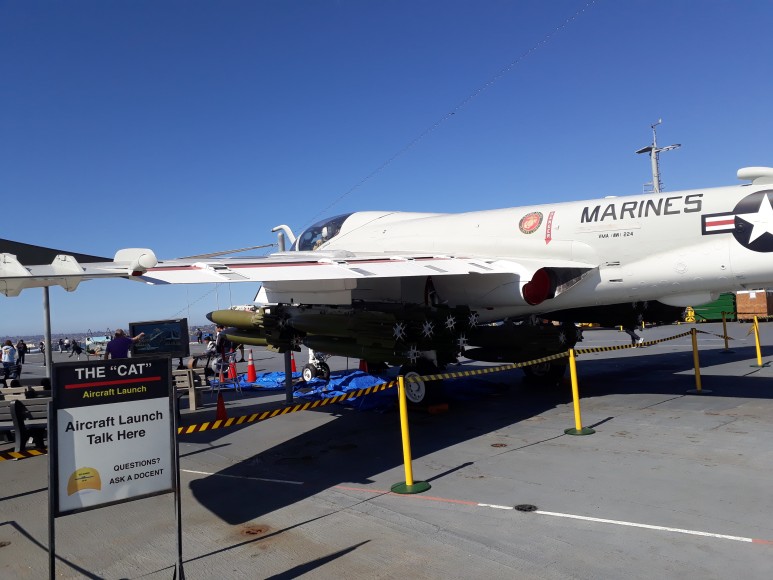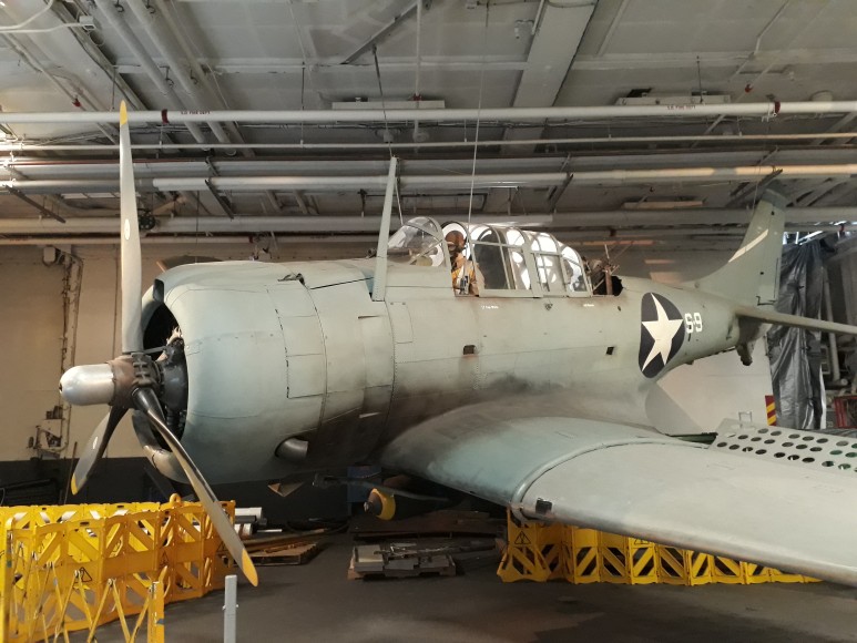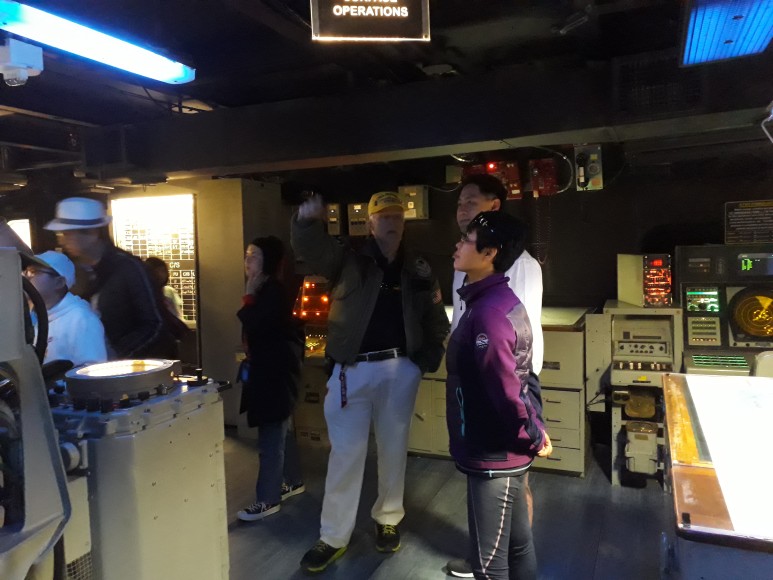 ▶ 전설적인 항모의 해상생활에 관한 전시물, 복원된 항공기, 비행 시뮬레이션 제공