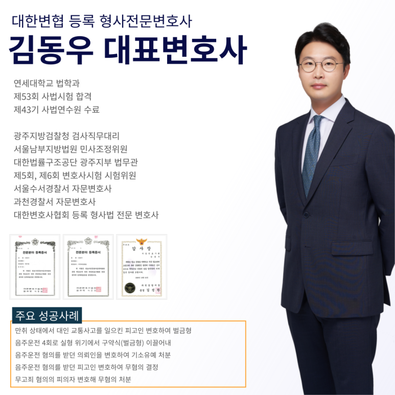 이후 검찰 단계를 거쳐 재판 과정에서 김동우 대표변호사는 공판에 직접 출석해 법정에서 음주운전 교통사고 혐의에 대해 의뢰인의 입장을 변론했습니다.