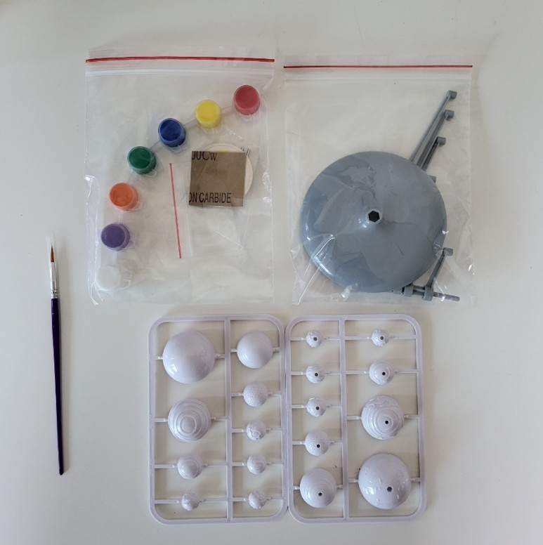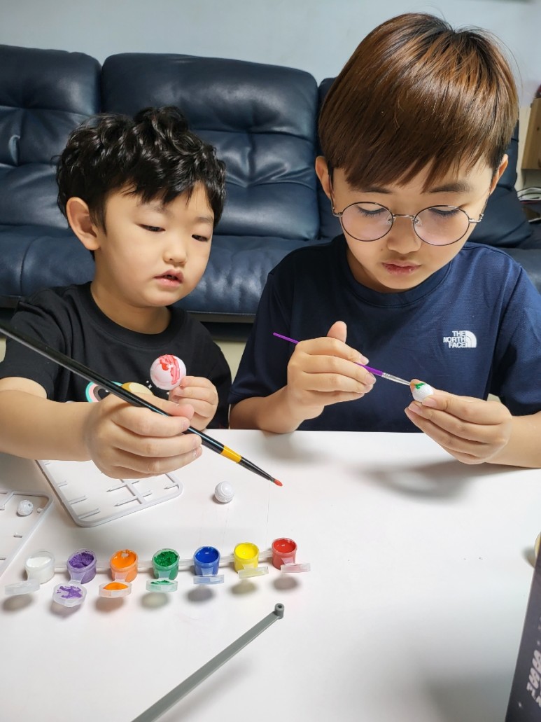 초등학생 과학 교구 키트 구성품에는 모형에 색칠할 수 있는 물감과 붓 세트가 들어 있어요. 물감을 넣은 팔레트가 귀엽네요. 다만 들어 있는 물감이 좋지 않거나 바르기 어려워 집에 가지고 있던 포스트 물감으로 색칠해 주었습니다.