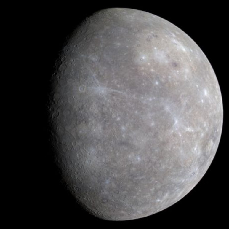 수성은 태양에 가장 가까운 행성이며 태양계에서 가장 작은 행성이기도 합니다. 크기는 달보다 약간 큰 정도지만 무거운 중금속으로 이루어져 있고 밀도는 지구 다음으로 큽니다.