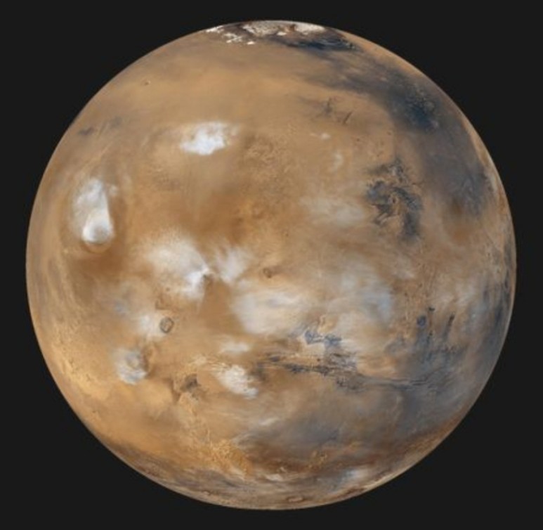 태양계에서 네 번째 행성 태양계 네 번째 행성 화성은 표면의 산화철 성분 때문에 붉은색을 띄고 있습니다. 과학자들은 표면에 물이 흐른 흔적을 보고 과거에 화성에 큰 호수나 바다가 있었고 생물이 살았을 가능성도 있다고 생각합니다. 하지만 현재의 화성은 건조하고 황량한 사막과 같습니다. 대기가 얇은 데다 대부분 이산화탄소로 이뤄져 생명체가 살 수 없기 때문입니다.