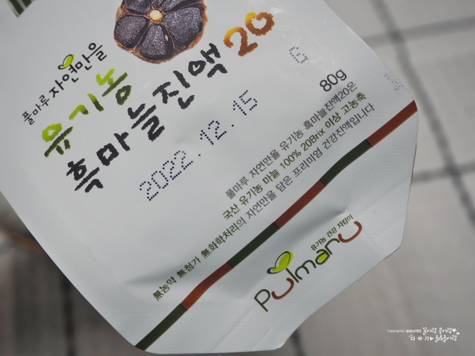 10년 이상 오가닉 인증을 유지한 남해 농장에서 자란 마늘을 사용하기 때문입니다.농약이나 화학비료가 없는 땅에서 자란 유기농 마늘을 그것도 껍질을 벗기고 그대로 녹인다고 하니까요.마늘 껍질이 육질에 비해 식이섬유 함량과 폴리페놀 함량이 훨씬 높다고 하는데 이건 제가 어떻게 먹을 방법이 없었거든요.저온 감압 농축으로 성분 파괴 없이 진하게 담긴 제품이므로 믿고 음용하셔도 좋습니다.