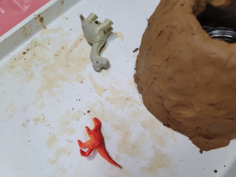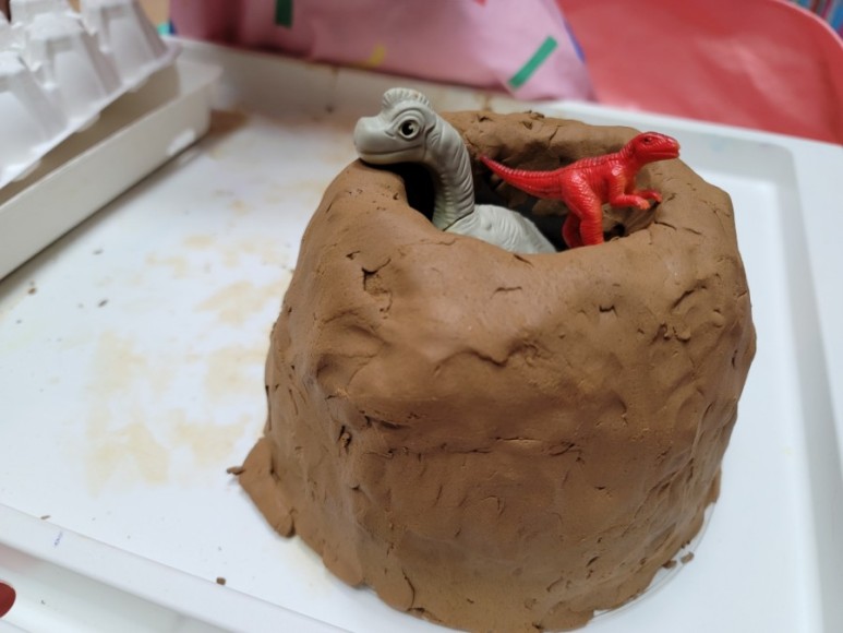 혼자 하는 게 어려워서 같이 붙이고 같이 주물렀다.같이 산을 만들면서 정말 즐거웠다.집에는 공룡 피겨가 2개 있는데 나를 도왔다.공룡이 이렇게 없었다니 또 새삼스럽네.다음에 공룡이 보이면 좀 사야겠어요.
