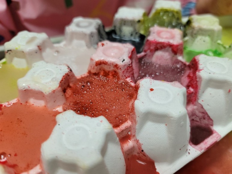 점토 플라스틱 컵, 용기 물감 베이킹 소다 구연산 계란판