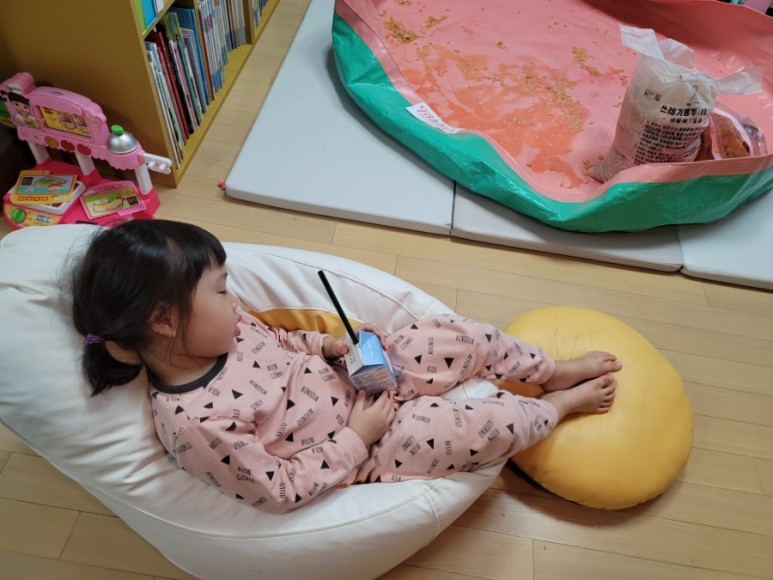 정리하는 동안 우유를 마시다가 그렇게 잠이 들어 버렸어.후후