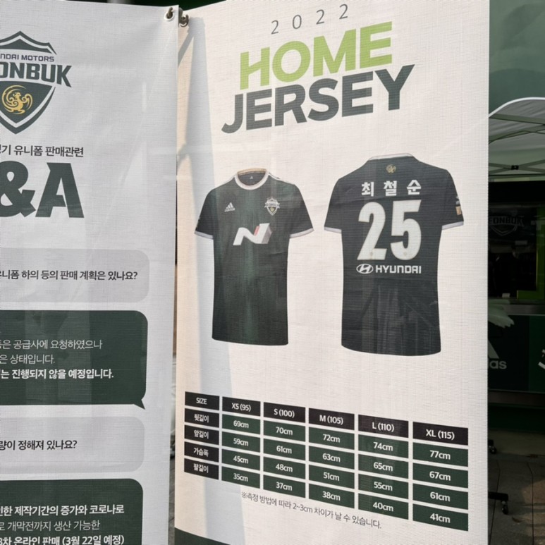 올 22시즌 동안 유니폼도 구입하지 못하는 사태는 없을 것이다. 2차 택배로 득템한 교수님도 S입었대! 3월 23일 택배 발송 예정이야.5월 5일 2시 서울전 전주성 홈경기부터 입을 수 있을 것 같아.