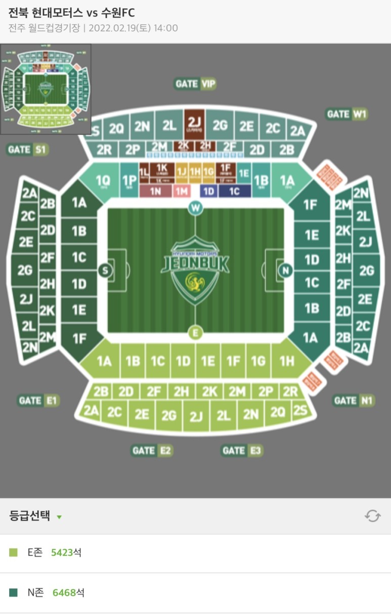 익산은 ? 하루 확진 환자가 400명이 넘는 상황이니까 백신 3차 접종은 마쳤는데 흠?안 갈래? 싶기도 했지만 전주성 개막전을 기다려왔다. 한 칸씩 띄어 앉는 E존 예매?사람 별로 없어 2층 가자~
