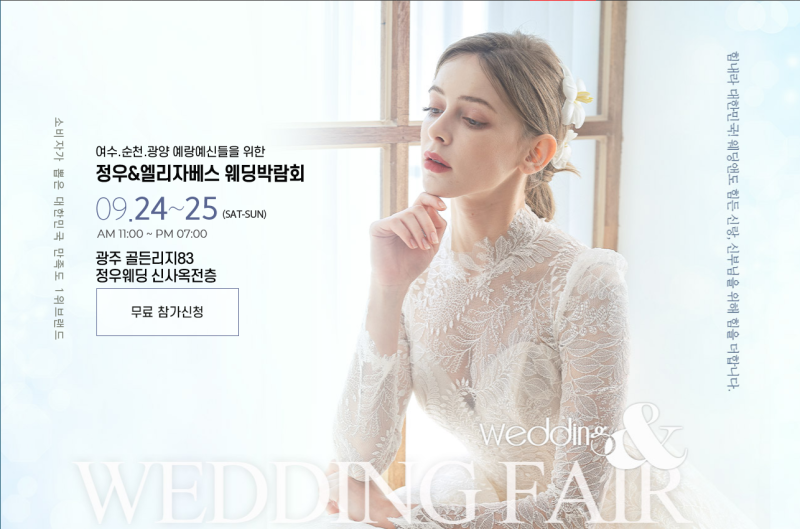 12월 17-18 여수/순천지역 신랑신부 여러분께^^정우웨딩_엘리자베스 광주점에서 진행되는 특별한 웨딩페어 일정을 안내드립니다~ 더욱 특별해진 혜택으로 진행되고 있습니다.^^