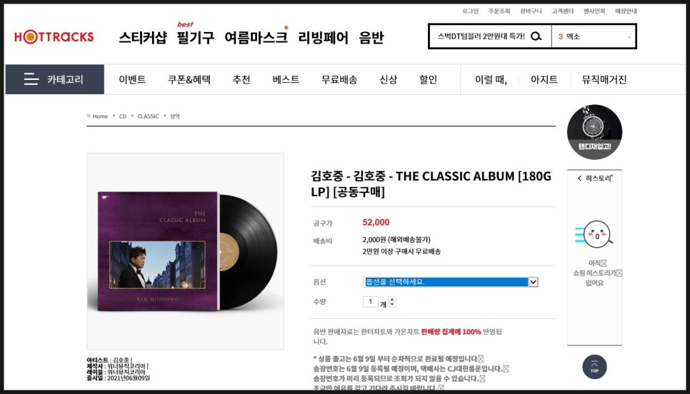 교보 핫트랙스 세트 주문(전화주문없음) http://www.hottracks.co.kr/ht/record/speDetail/hjlp2 김호준 www.hottracks.co.kr