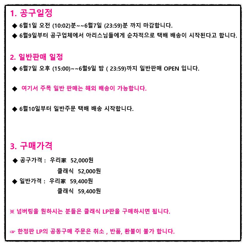 가수분의 한정판 LP는 소장용으로 구입을 하겠습니다.