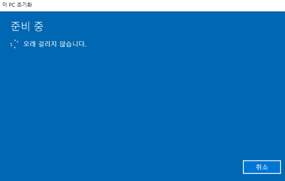 그러면 로딩 화면이 잠시 등장하는 것과 함께 컴퓨터 포맷이 시작됩니다.그 모든 과정이 끝나면 깨끗한 상태의 창을 만날 수 있습니다.